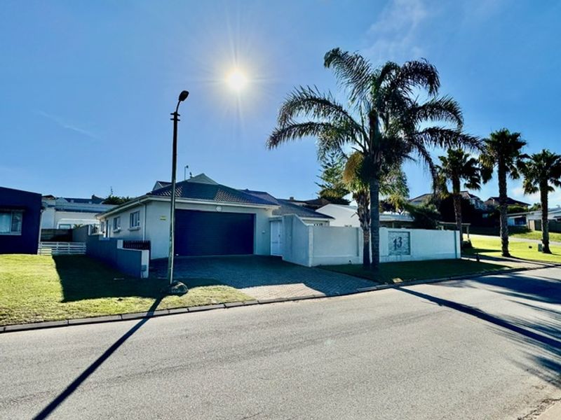 Relaxed coastal family living in Stilbaai Heights on the Garden Route, open-plan flow and a spacious lush lawn — three bedrooms, two bathrooms and single garage.