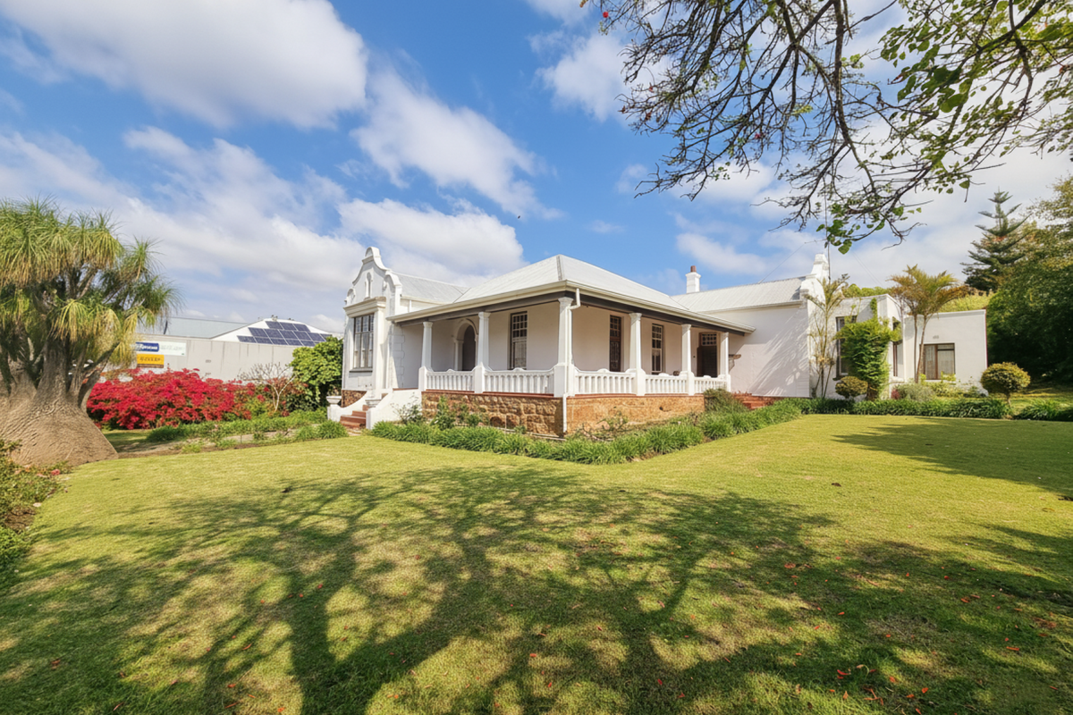 Live and work in central Swellendam, steps from historic streets and Bontebok Reserve — character home with established garden, two income flats and development potential on 3216m².