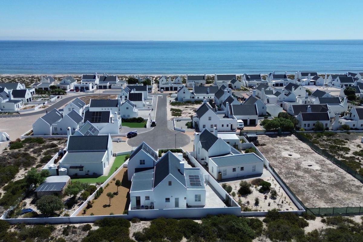 Tucked away in a quiet close in sought-after Dwarskersbos with beach access at the end of the street, this beautiful home offers the perfect blend of coastal charm and modern comfort. The expansive open-plan living, dining and indoor braai area welcomes you with striking double-volume ceilings and character wood beams, creating a warm yet airy atmosphere. A fully fitted dream kitchen with separate laundry/scullery ensures practical everyday living. Two bedrooms with a shared bathroom are privately positioned on one wing, while the master suite occupies the opposite side of the home, complete with dressing room and full en-suite bathroom. Upstairs, a versatile loft room with its own balcony provides the ideal additional bedroom, work-from-home space or studio. An undercover patio looks out towards the sea, perfect for relaxed West Coast evenings. Double garage, low-maintenance garden and solar system complete this exceptional coastal offering.
