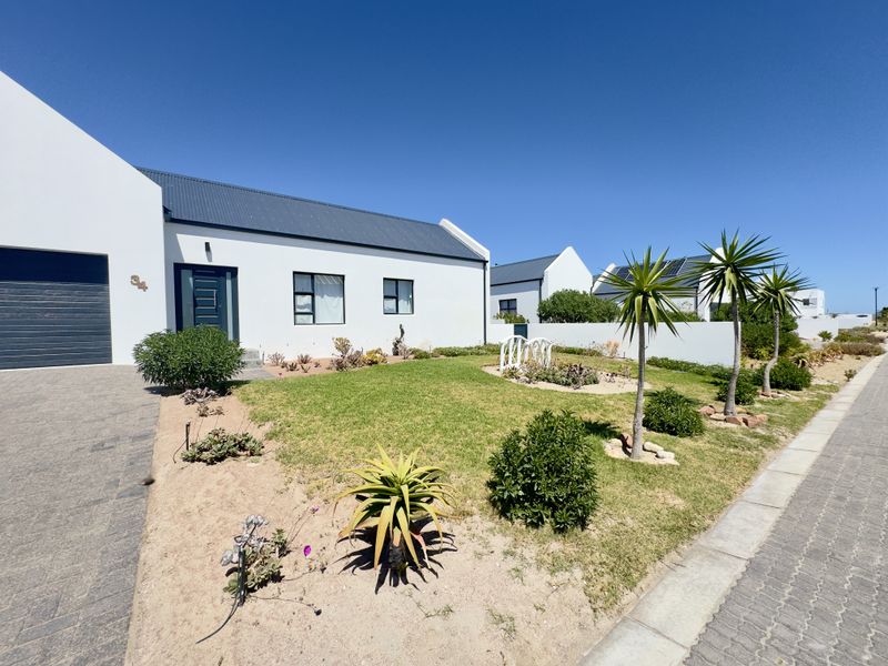 Relaxed West Coast living steps from the beach in secure Atlantic Waves Estate, with a sheltered braai and paved courtyard, modern kitchen and three bedrooms, two bathrooms, double garage.