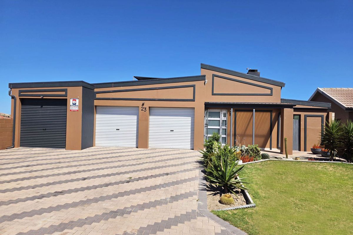 Relaxed West Coast lifestyle near West Coast Mall with covered patio and enclosed backyard for pets; open-plan living with built-in braai and full backup solar power. Two bedrooms, two bathrooms.