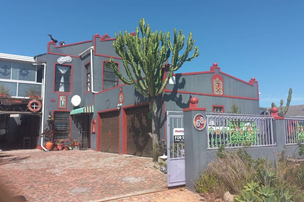 Seaside living and rental potential in Kleinkrantz, Moroccan-style home against the greenbelt with rooftop viewing deck, solar power and succulent courtyard — three income-ready units; five beds, three baths.