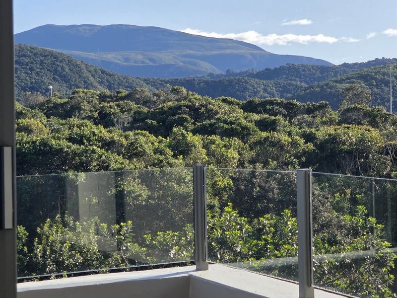 4-bedroom home in Wilderness Garden Estate with open-plan living, pool, bar, and ocean views. Furniture included.