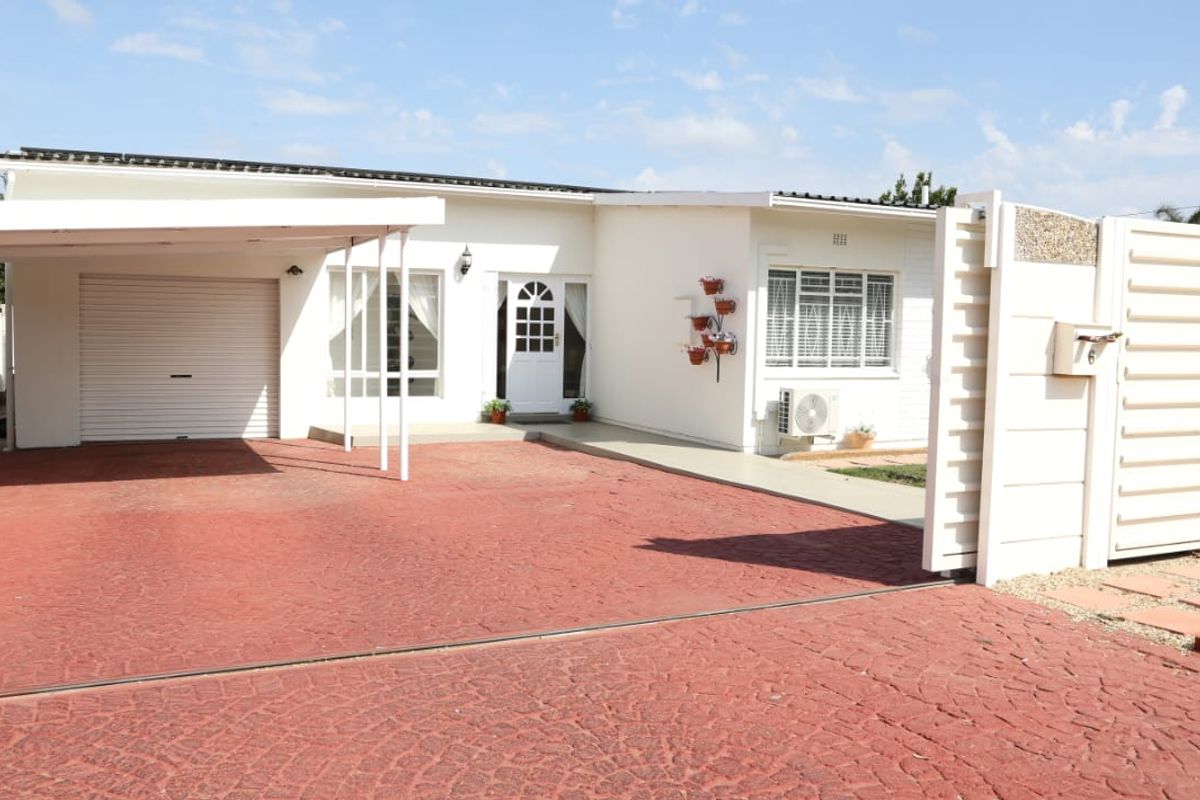 Entertainer's Meiringspark home with seamless indoor-outdoor flow, braai area and splash pool, solar-powered efficiency, four bedrooms, two baths, garage and covered parking behind remote gate.