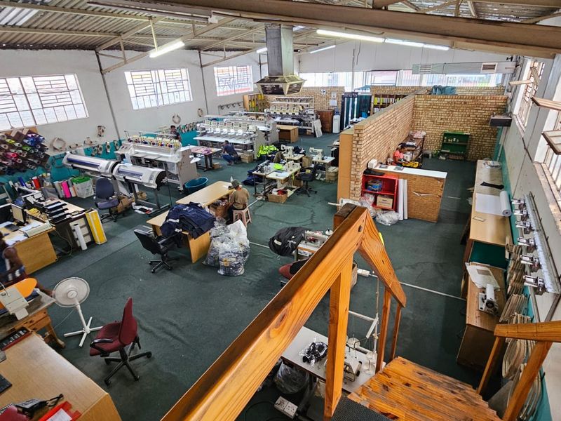 Turnkey manufacturing opportunity on the edge of Vereeniging CBD — ideal for growing textile production. Features heavy-duty computerised embroidery and printing machines, generator, cooling system, offices and storeroom.