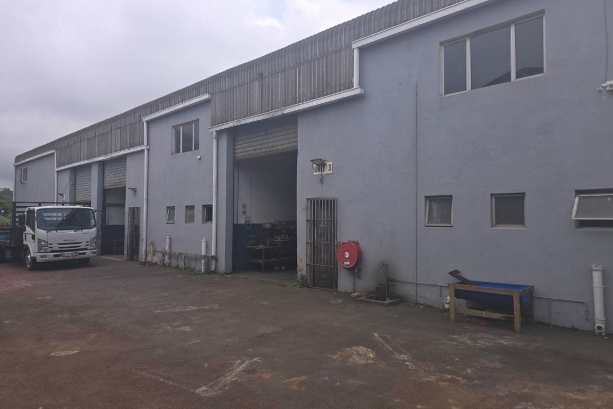 Scale your operations in Southgate Business Park, Amanzimtoti — three sectionalized workshop units (or combined) with three-phase power, mezzanine offices and ample yard for truck access.