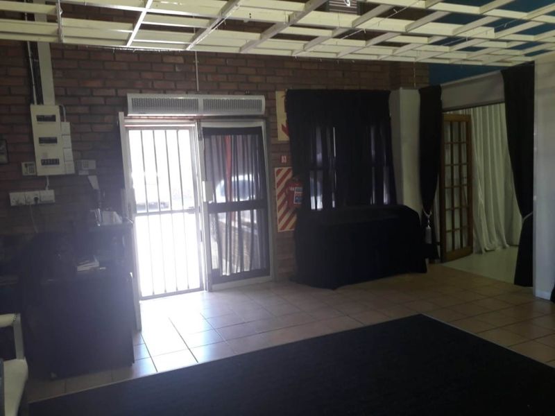 Secure, functional workshop perfect for small businesses, centrally located with reception and kitchen, roller door frontage, rear access, male/female toilets, heavy-duty burglar bars and two large air-conditioners.