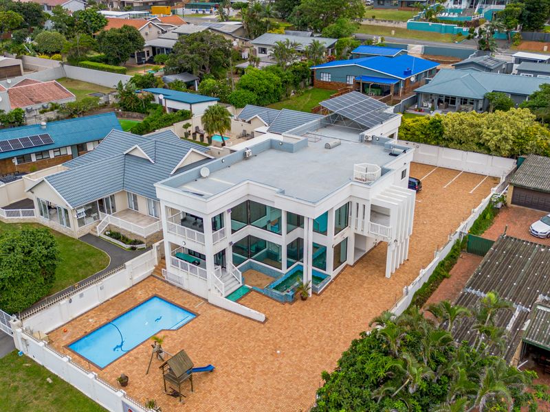 Seaside lifestyle in the heart of Ballito Central, with sweeping sea views and a wrap-around balcony. Generous freestanding home with seven bedrooms, seven bathrooms and five covered parking.