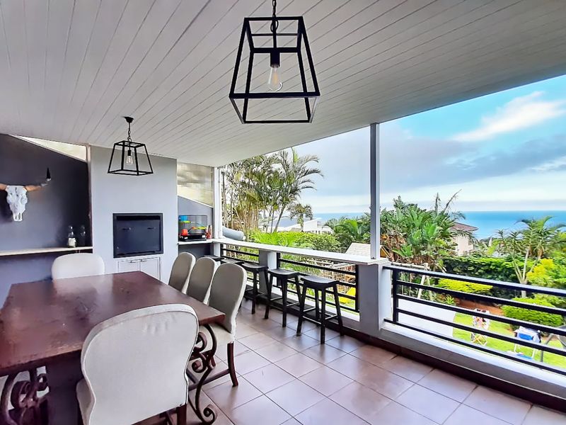 Entertain effortlessly in Ballito Central with panoramic sea views, expansive covered patio and built-in braai overlooking pool and 1012m2 pet-friendly garden — includes self-contained flatlet.