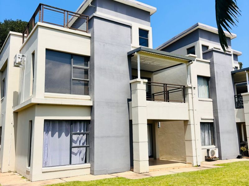 Resort-style family living in Palm Lakes Estate with open-plan living flowing to a stoep overlooking peaceful greenbelt; main-bedroom balcony and study/playroom. Four bedrooms, three bathrooms, double garage.
