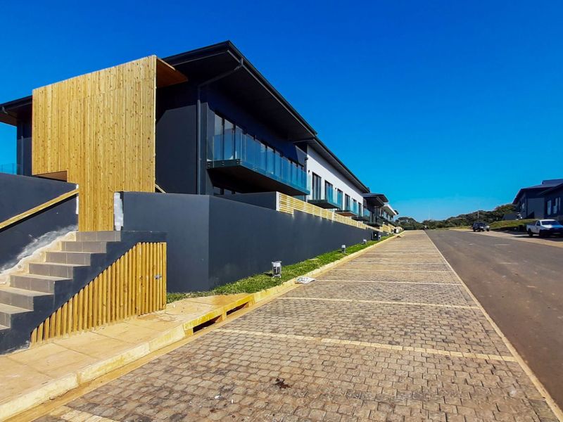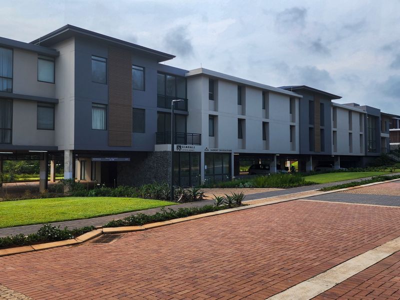Resort-style coastal living in Zimbali Lakes with exclusive Beach Club access via underpass and ocean-framed views; features a modern kitchenette, lavish shower, one bathroom and covered parking.