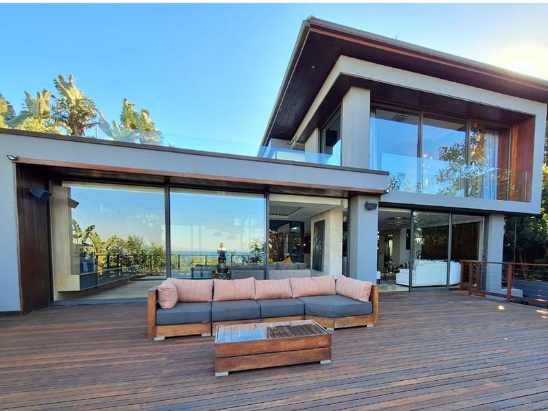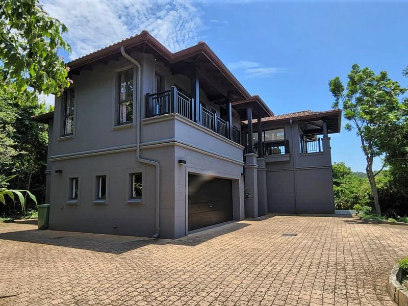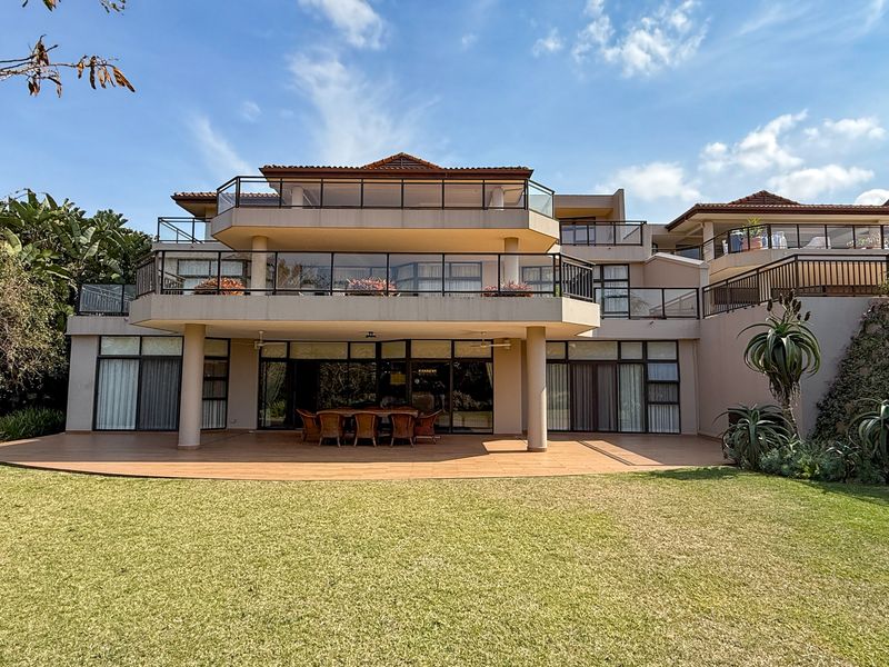 Resort-style living in Zimbali Estate, close to the Valley of the Pools — open-plan entertaining flowing to a deck with sea views and built-in Jacuzzi; five bedrooms, five bathrooms.