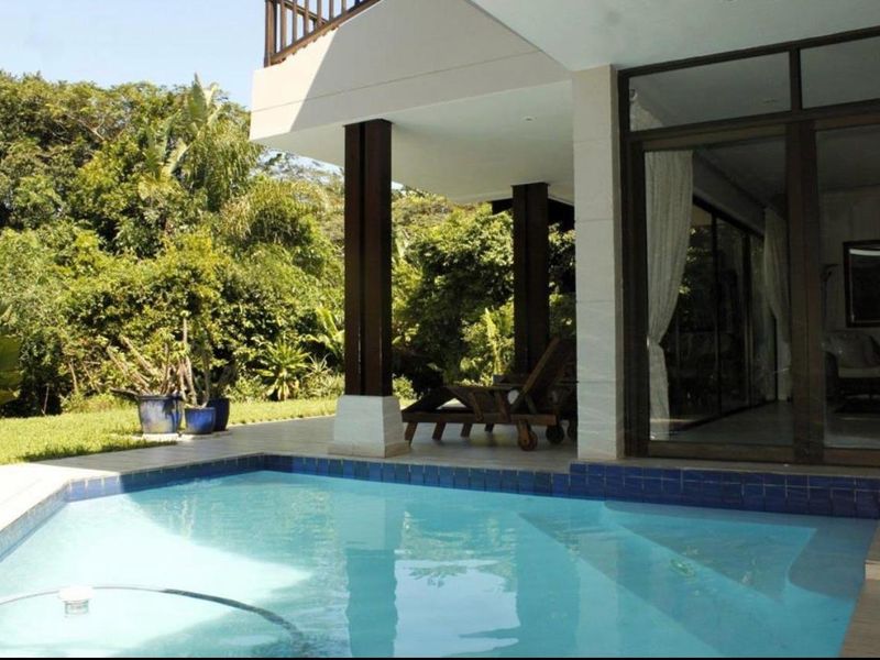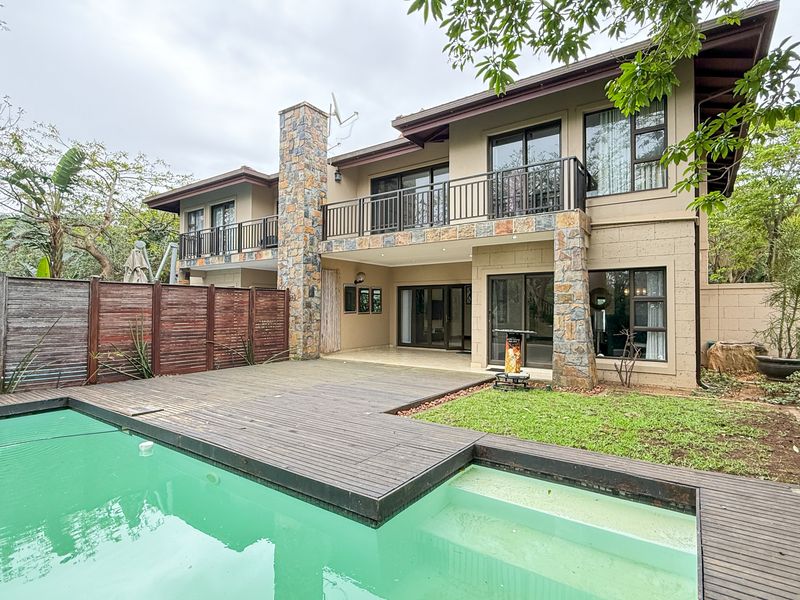 Resort-style North Coast living in prestigious Zimbali Estate, moments from the Bushbuck Club. Contemporary interiors, upgraded kitchen and private pool — three bedrooms, three baths and double garage.