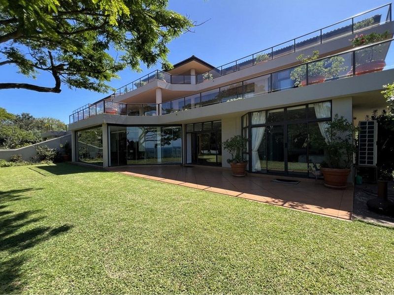 Resort-style coastal living in exclusive Zimbali Estate with sea views and forested privacy, open-plan entertaining centered around a private cinema — five bedrooms, four bathrooms.