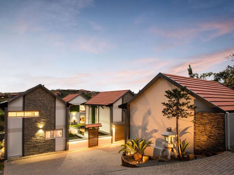 Zen coastal living in Zimbali Estate with private beach and golf access; koi pond courtyard, loft bedroom suites with sunset patios, six bedrooms, six bathrooms and double garage.