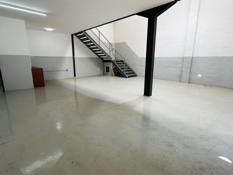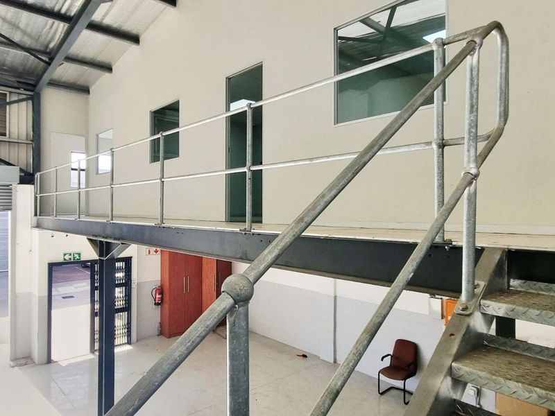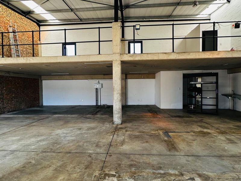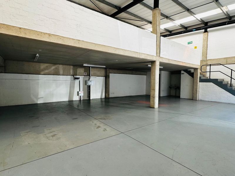 Effortless logistics and secure operations in a well-kept facebrick industrial park, with mezzanine offices, roller door and loading bay; includes three parking bays and one toilet.