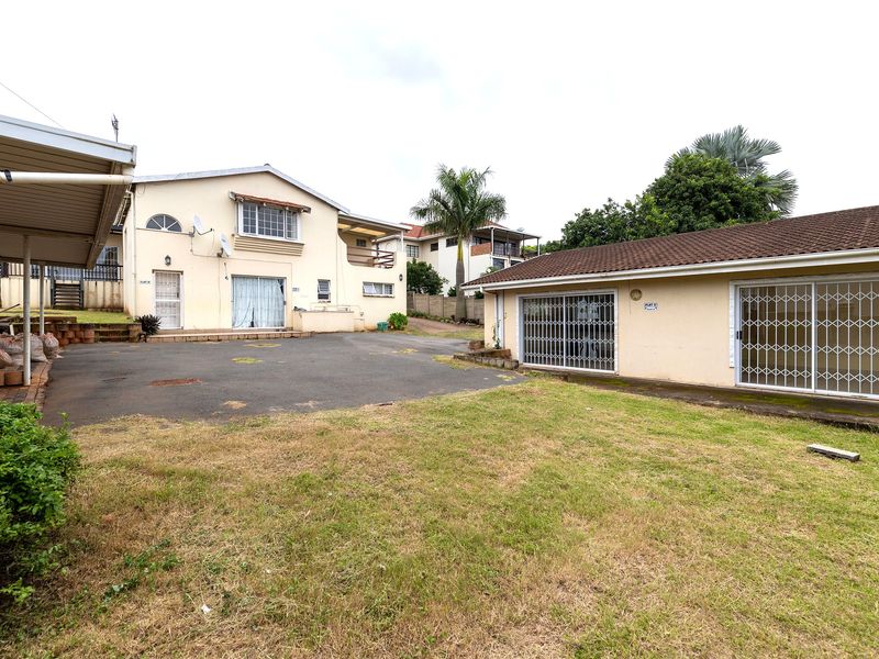 Coastal convenience meets investment potential in Durban North — high-visibility Kenneth Kaunda Road location, expansive 1,214m² grounds for development, seven bedrooms, six baths and two covered parking.