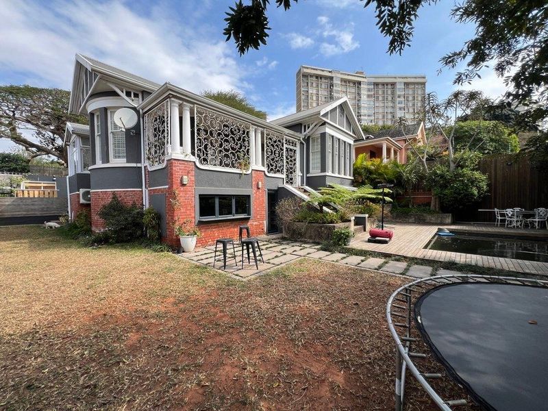 Live in vibrant central Durban with a sparkling pool and income-ready one-bedroom granny flat — open-plan family living, fully fitted kitchen, two garages, three bedrooms, two baths.