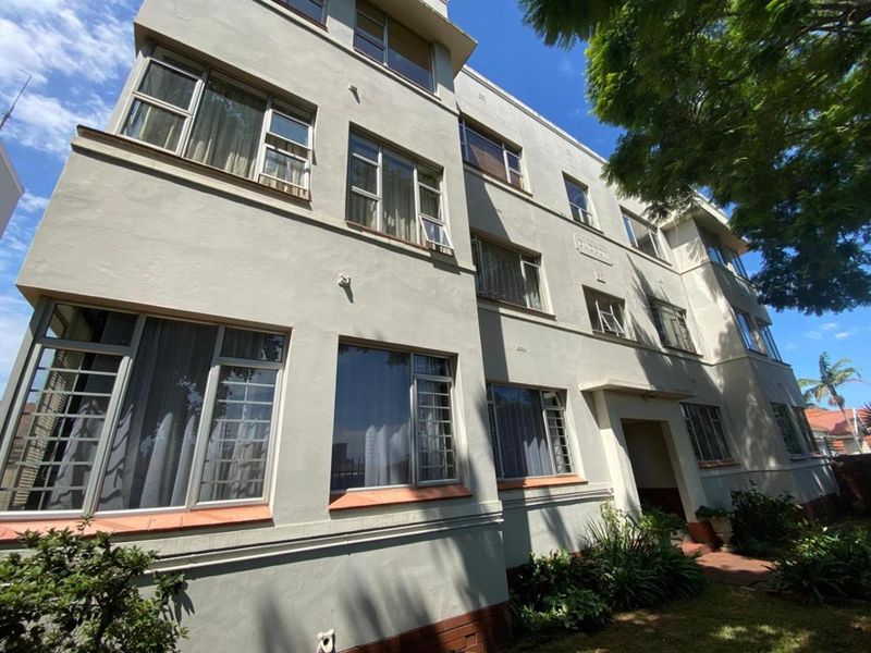 Comfortable urban retreat in Glenwood, Durban, close to cafes and parks, with sunlit living spaces, secure 24-hour guarded access and parking; includes two bedrooms and one bathroom.
