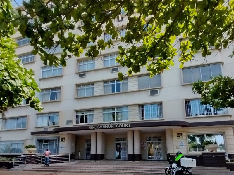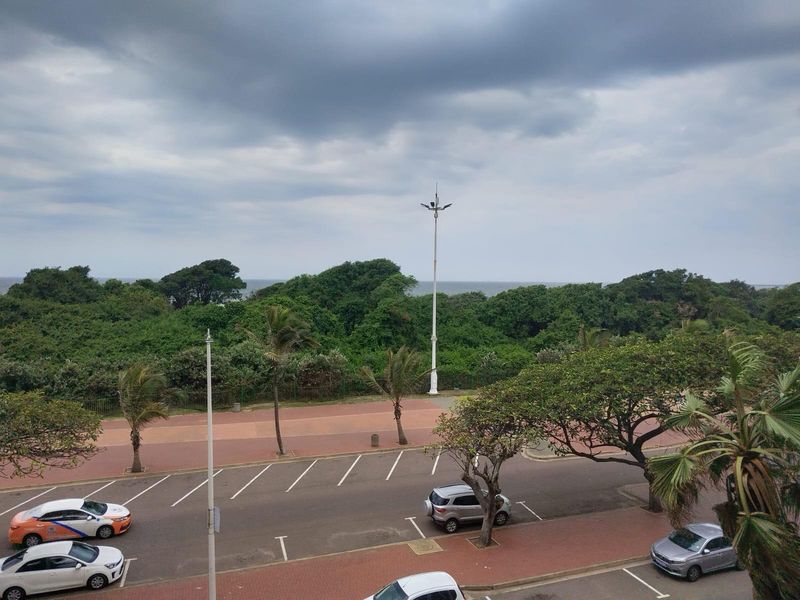 Enjoy beachside living in North Beach, Durban — steps from the Golden Mile and ocean, with parquet floors, enclosed balcony second room, two bedrooms, one bath, covered parking.