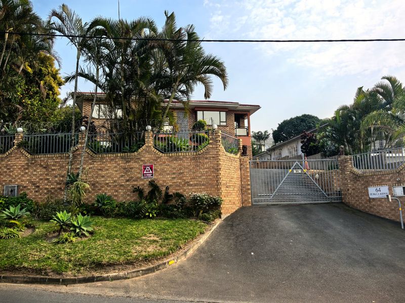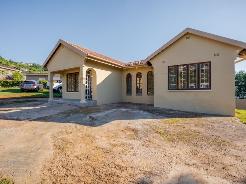 Versatile family sanctuary with income potential in elevated Reservoir Hills, Durban, among rolling hills and sea breezes, offering 270-degree ocean views and a self-contained back house for guests.