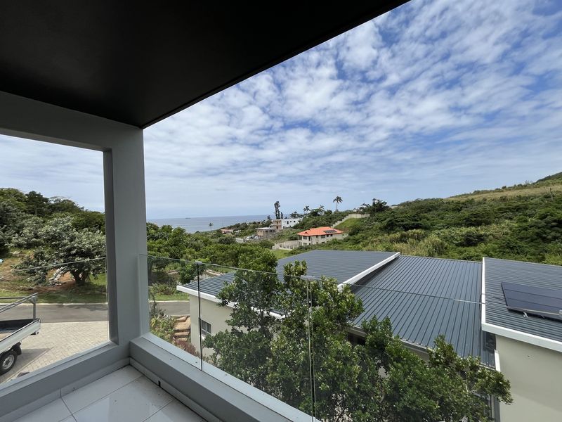 Coastal living with panoramic sea views and leafy privacy, minutes from Ballito, Umhlanga and the beach. New double-storey home with three bedrooms, 3.5 baths and two covered parking.