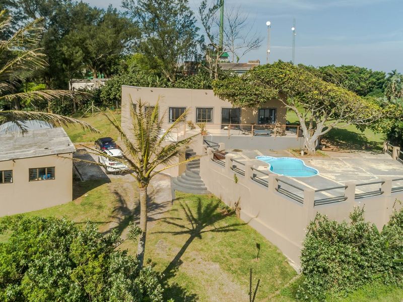 Relaxed coastal living on a hilltop in Tugela Mouth with sweeping 180-degree sea views, entertainer's patio with glass stack doors and movie lounge — three bedrooms, two bathrooms.