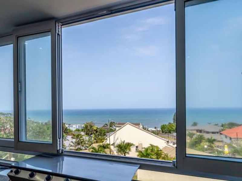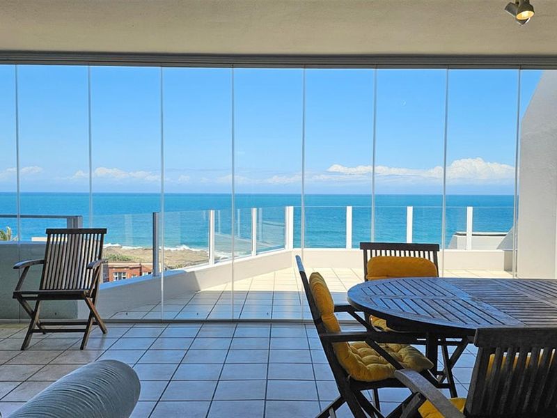Wake to ocean breezes and 180-degree sea views in sought-after Uvongo, with a glass-enclosed living area, granite kitchen and separate one-bedroom flat — four bedrooms, three bathrooms and double garage.