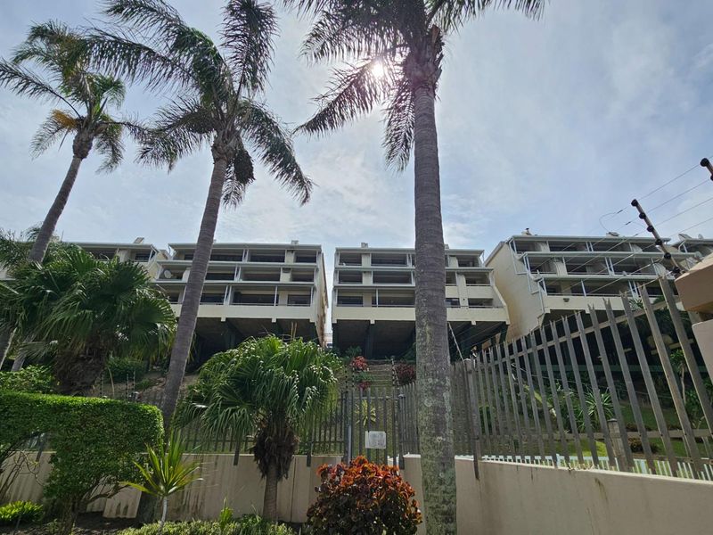 Relaxed beachside living in Manaba Beach, Margate — top-floor apartment with sunset patio and built-in braai, pool access, and two bedrooms, two bathrooms with secure garage.