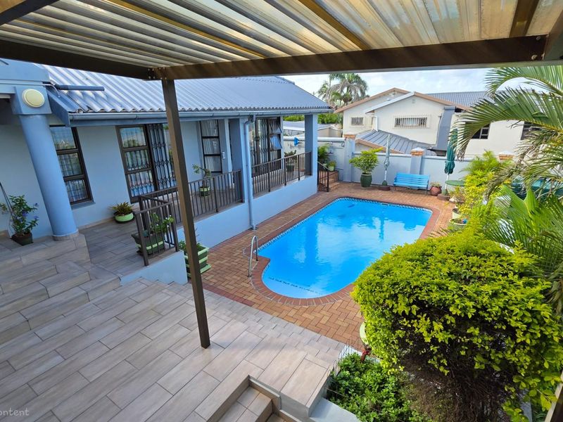 Everyday seaside living just metres from Manaba Beach and Lilliecrona Boulevard, featuring income-generating flatlets, two pools and entertainer’s bar — six bedrooms, 4.5 baths, double garage.