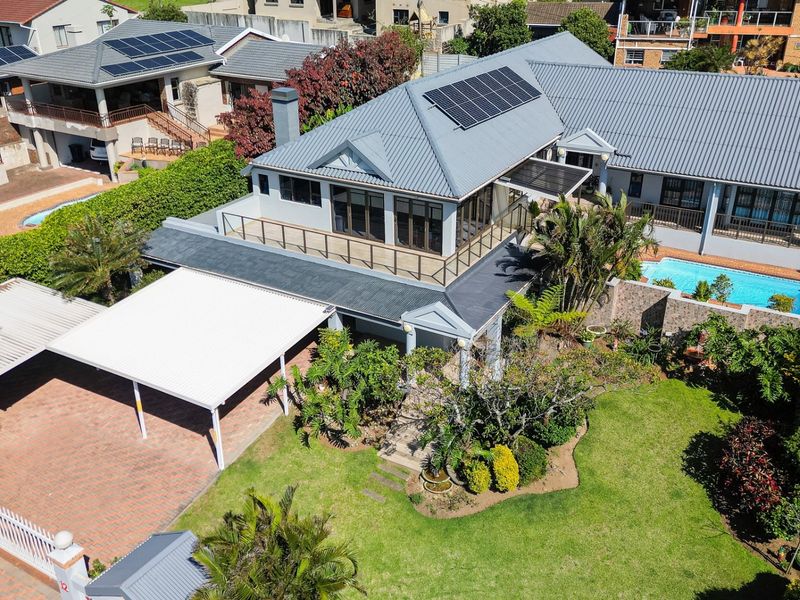 Coastal lifestyle with beach access and sweeping sea views, ideal for entertaining on the patio with built-in braai and pool; flexible layout includes five bedrooms and double garage.