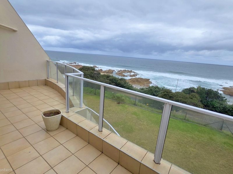Beachfront lifestyle with panoramic sea views and short stroll to shore; spacious balcony overlooks pool and communal braai — perfect lock-up-and-go retreat with three bedrooms and two bathrooms.