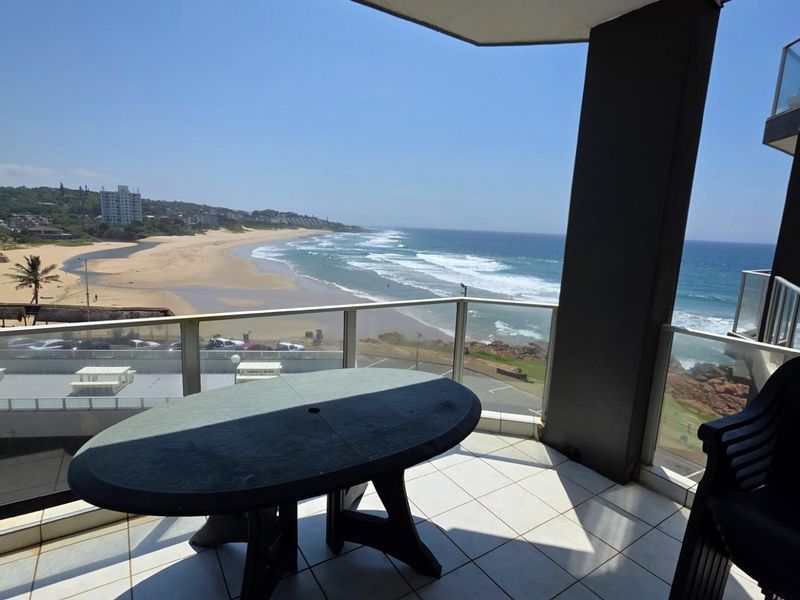 Coastal living on Margate's South Coast — wake to ocean breezes from a furnished apartment with balcony and built-in braai, pool and sea views; two bedrooms, two baths, secure parking.