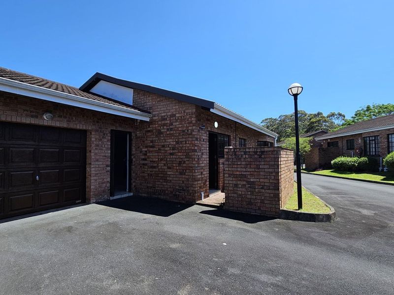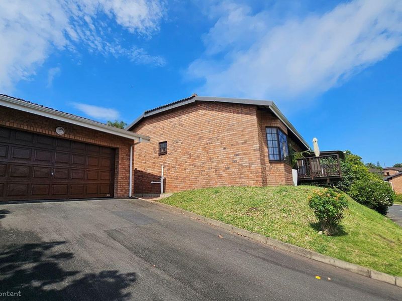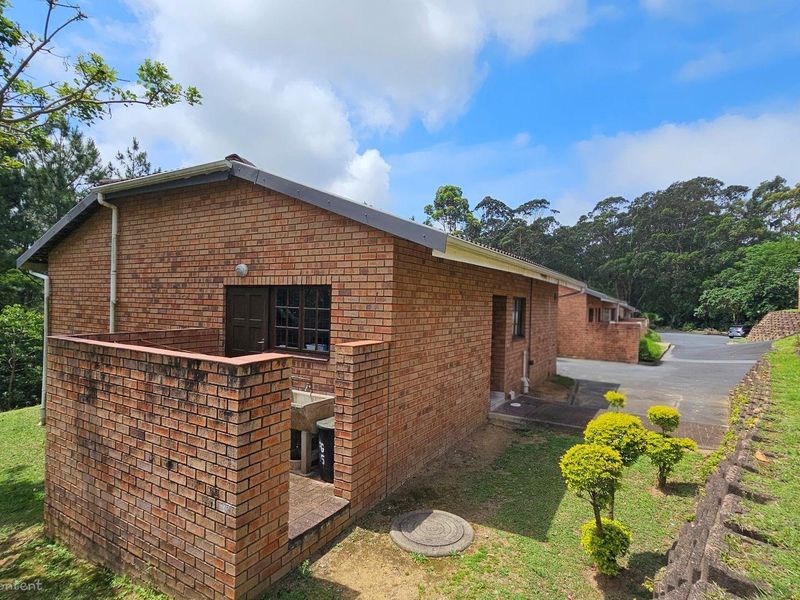 Forest-edge, low-maintenance living in Margate Eco Estate with 24-hour security and community facilities; ground-floor end-unit offers expansive wooden deck overlooking the kloof — two beds, two baths, single garage.