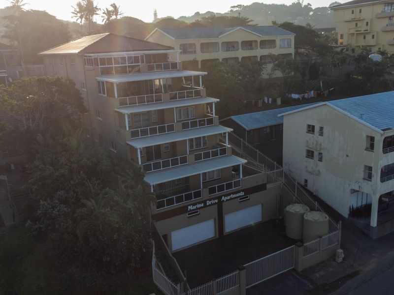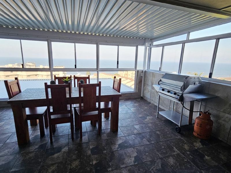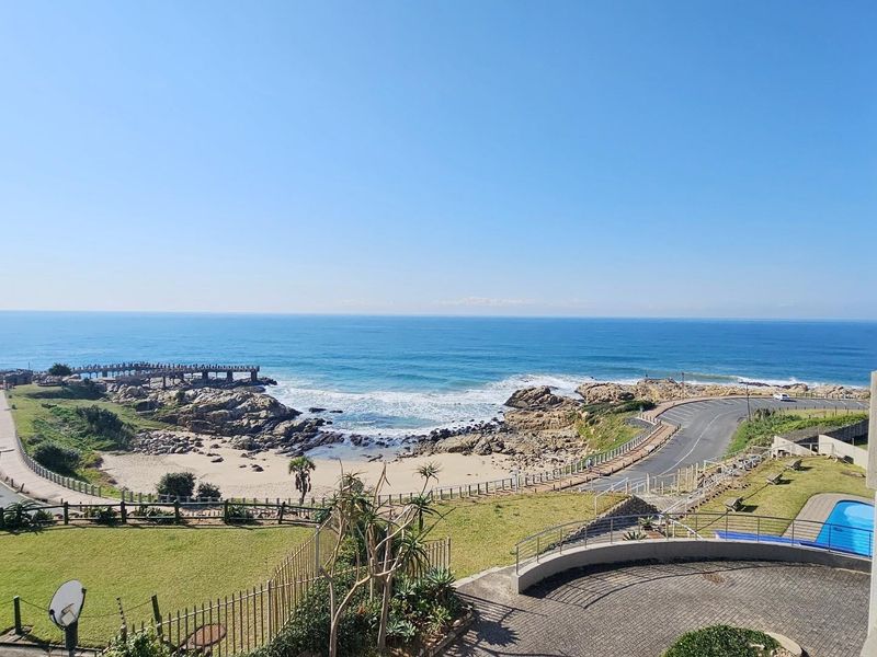 Coastal lifestyle with panoramic sea views from the 5th-floor apartment, walking distance to shops and restaurants. Features communal pool and braai, plus three bedrooms and two bathrooms.