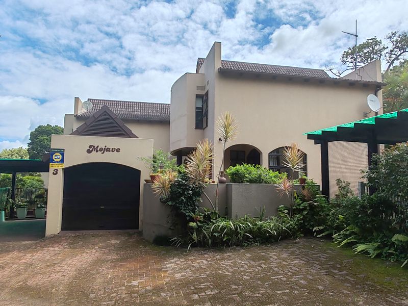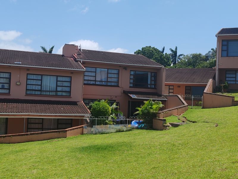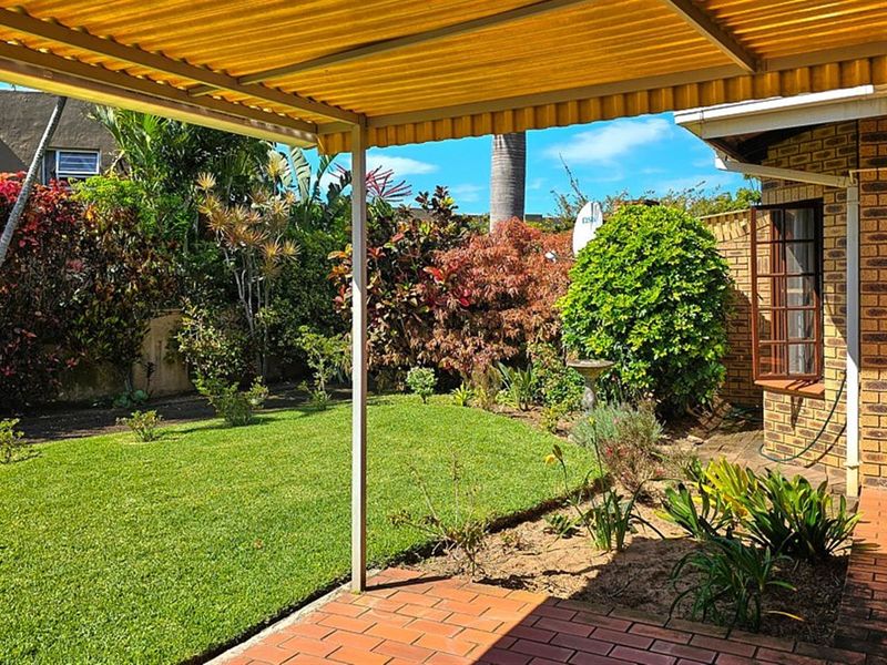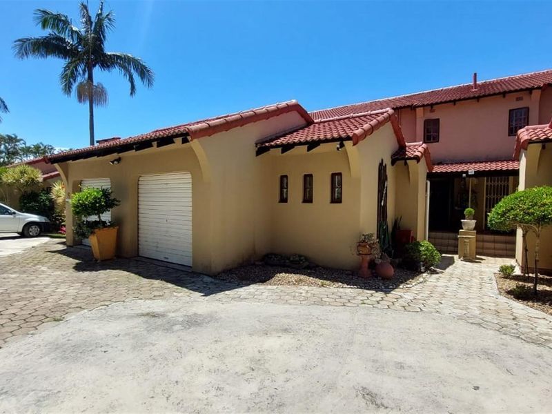Effortless coastal living in Uvongo—ground-floor townhouse in a 12-unit complex with large communal garden and private courtyard with built-in braai; three bedrooms, two baths, double garage.
