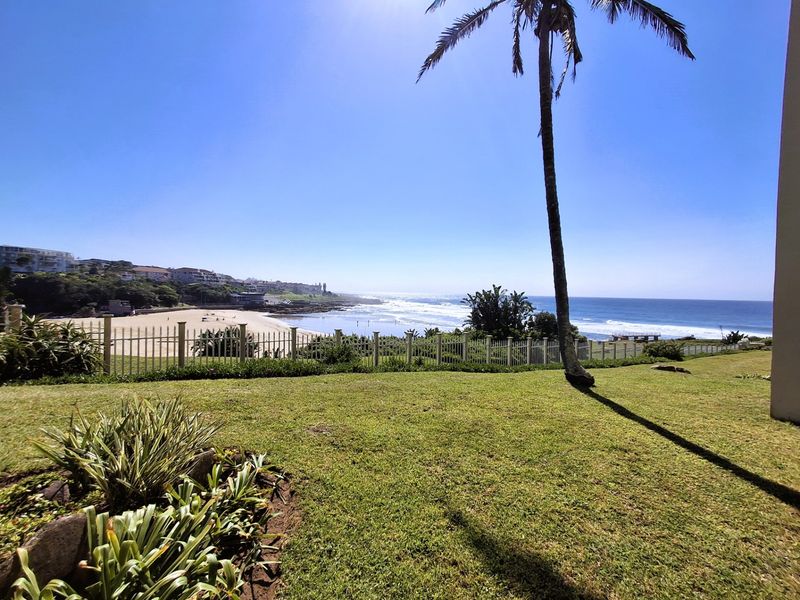 Wake up to coastal mornings with direct access to Uvongo Beach and sea views; neat complex offers pool, braai and play area — ideal lock-up-and-go one-bedroom, one-bath holiday retreat.