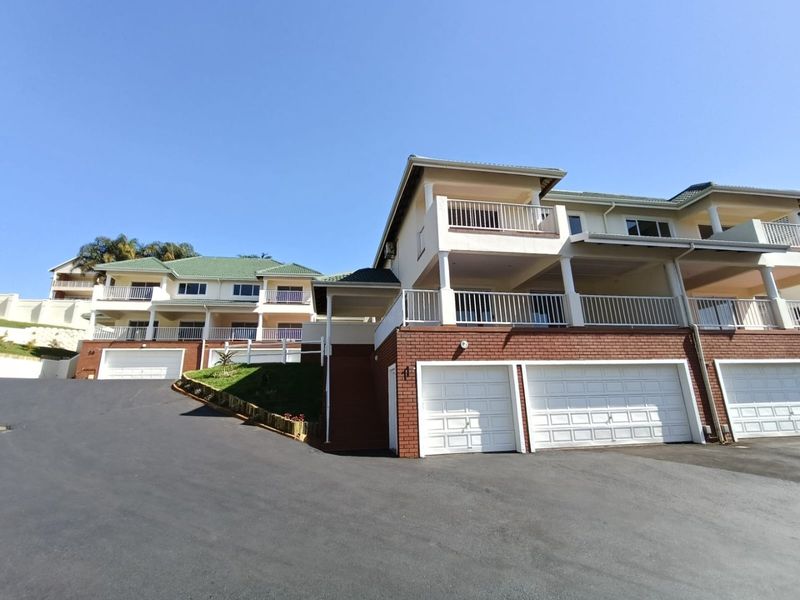 Peaceful Mount Edgecombe living with golf-estate charm, open-plan light-filled apartment featuring a modern island kitchen and balcony views — three bedrooms, two baths and a lock-up garage.