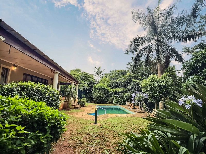Relax in tranquil Mtunzini, KwaZulu‑Natal, with expansive outdoor living on a 1955m² plot — sparkling pool, modern granite kitchen and home office; four bedrooms and three bathrooms.