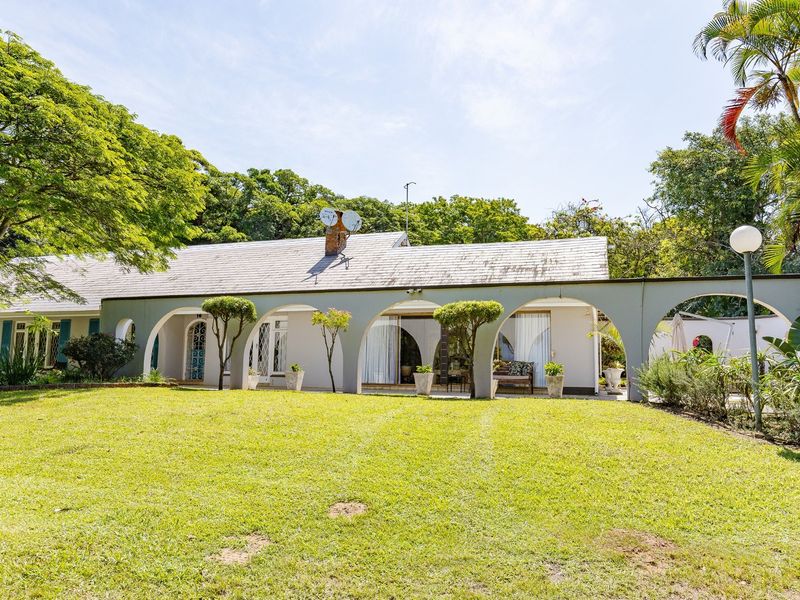 Coastal-country lifestyle in Melville, minutes from Port Shepstone and Banana Beach, with income-producing macadamia orchards, irrigation and dam, poolside entertaining and four-bedroom main house.