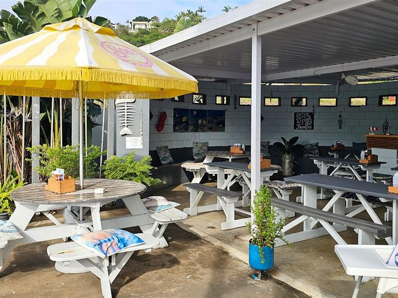 Riverside dining destination offering relaxed, family-friendly atmosphere on the Mzimkhulu River — expansive wooden deck, fully equipped kitchen (pizza oven), wheelchair and pet friendly; three bathrooms.