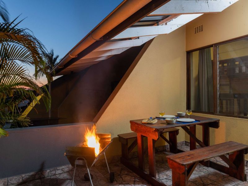 Enjoy vibrant St Lucia living and rental income on the main street—furnished 2-bed, 1-bath unit with sleek kitchen, private braai patio, communal pool and two covered parking bays.