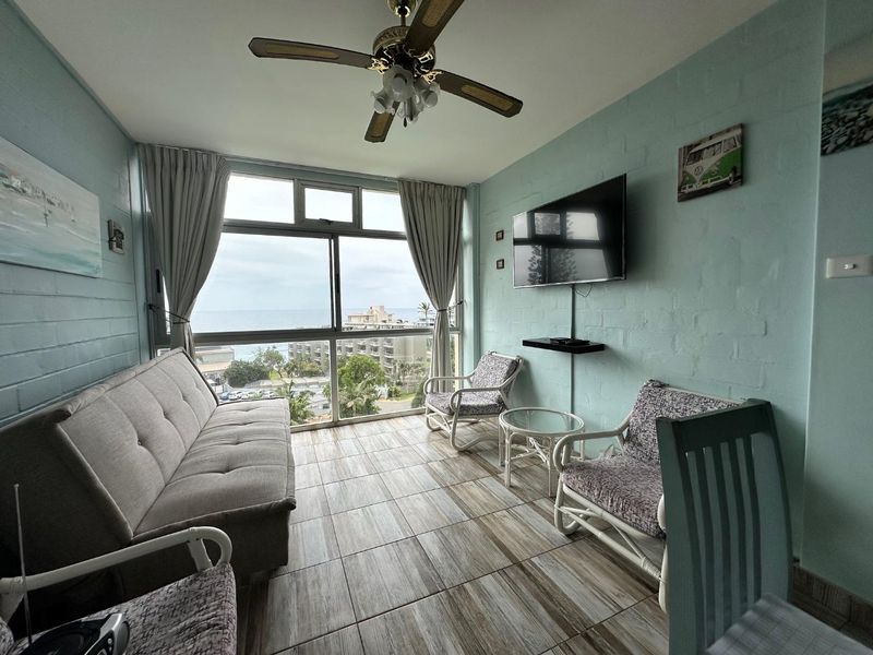 Coastal lock-up-and-go living with ocean breezes and easy access to shops and restaurants; fifth-floor apartment boasts panoramic sea views, modern open-plan kitchen, communal pool. Two bedrooms, one bath.