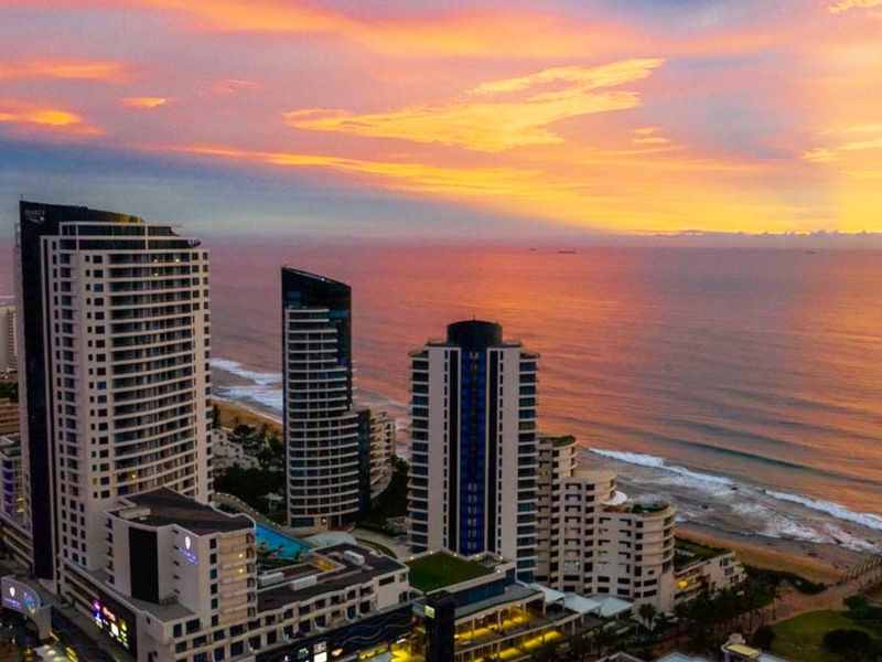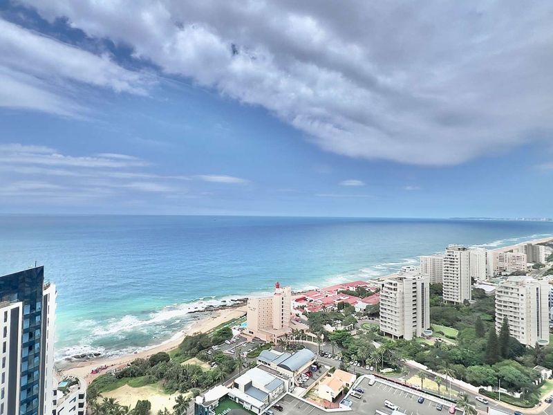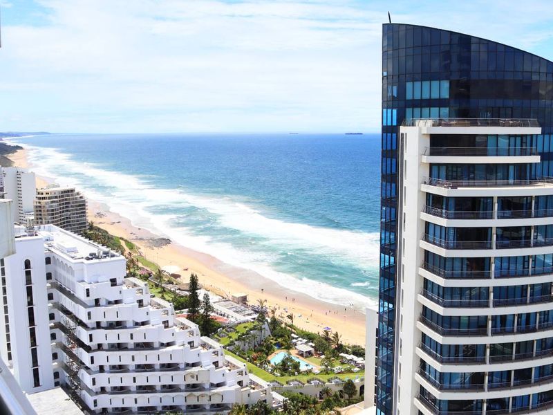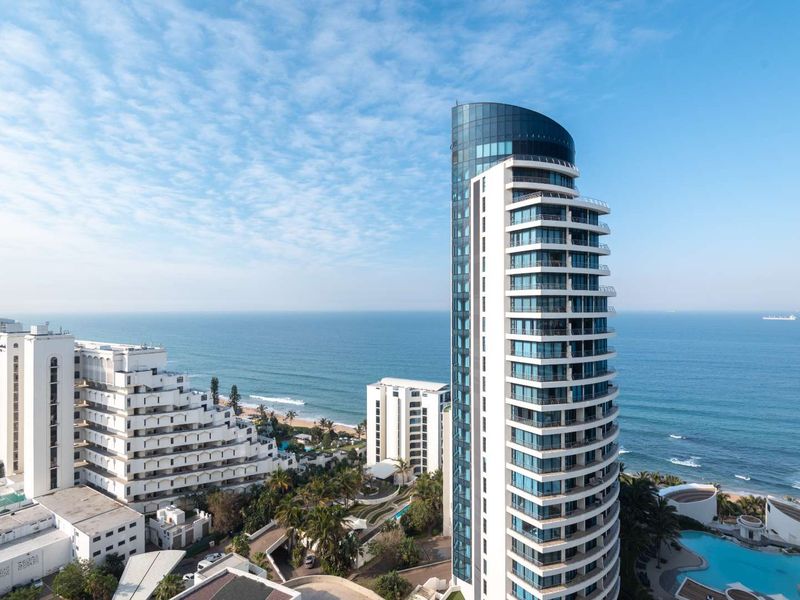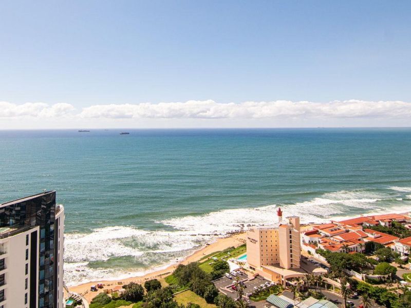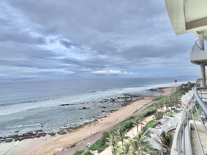 Beachfront lifestyle on Umhlanga's iconic shoreline with panoramic ocean views and direct beach access; heated pools, mall and hotel links, plus two en-suite bedrooms and covered parking.