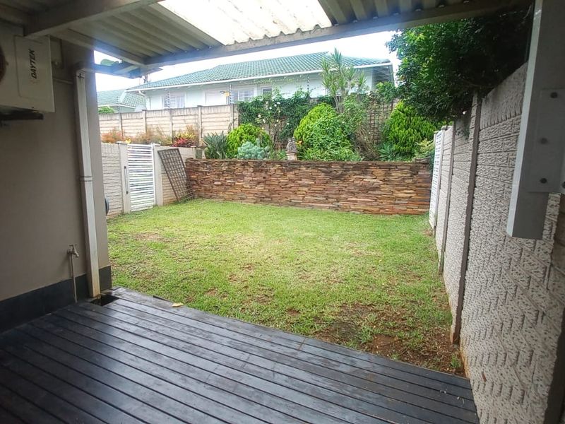 Peaceful garden townhouse on Umhlanga’s quieter edge, close to schools and shops, with a fully fitted kitchen and scullery, open living, three bedrooms and double garage.