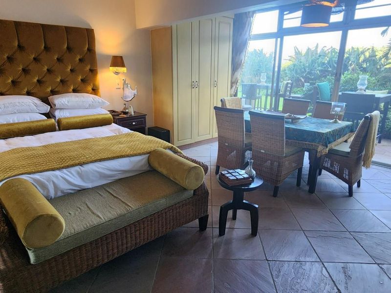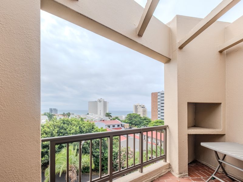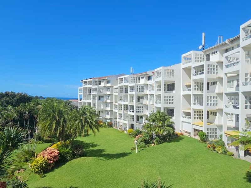 Relaxed coastal holiday lifestyle five minutes from Umhlanga Promenade, fully furnished for year-round rental income, private balcony with sea breezes and communal pool, braai area — two bedrooms, two baths.