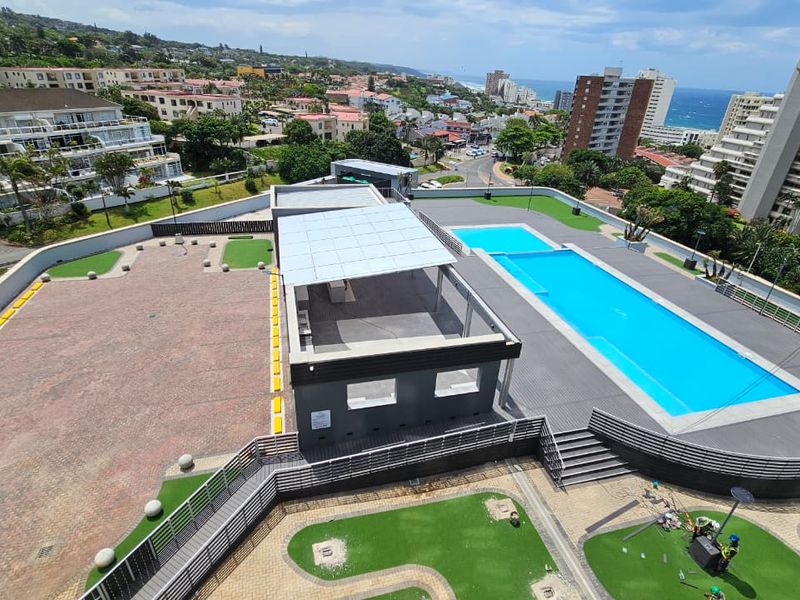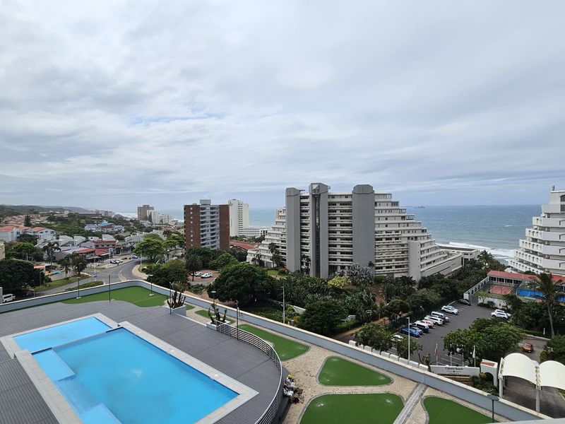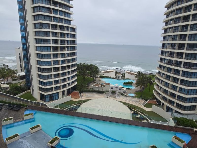 Resort-style living on Umhlanga promenade opposite Oceans Mall, walk to Pier and beach. Fully furnished 7th-floor apartment with balcony views of pool and Indian Ocean; two bedrooms, two en-suite baths.
