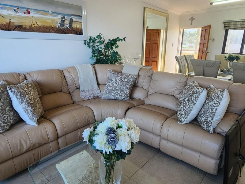 Beachfront living on the Indian Ocean with direct private beach access and panoramic sea views; open-plan entertaining, indoor gas braai, and six en-suite bedrooms — double garage.