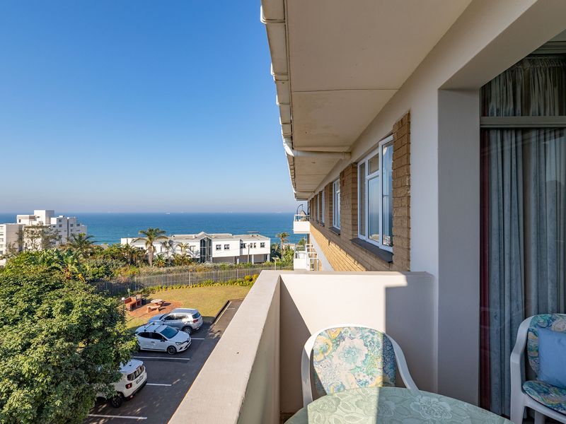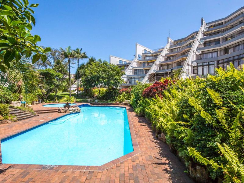 Coastal living in central Umhlanga—walk to shops, restaurants and the beach; ground-floor apartment with sea views. Two beds, two baths, single garage.