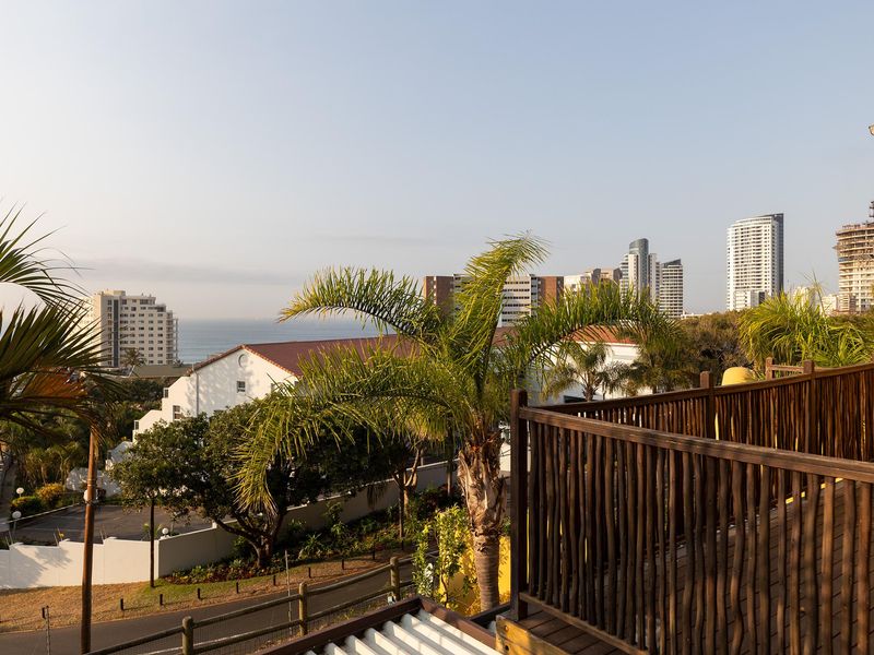 Entertainer's coastal retreat in Umhlanga Rocks, steps from beach and village; double-volume living with built-in bar, panoramic sea views and three bedrooms, 2.5 baths, two parking bays.